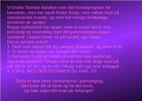 Karaoke er kjempegøy og knall stemning utloves!!!